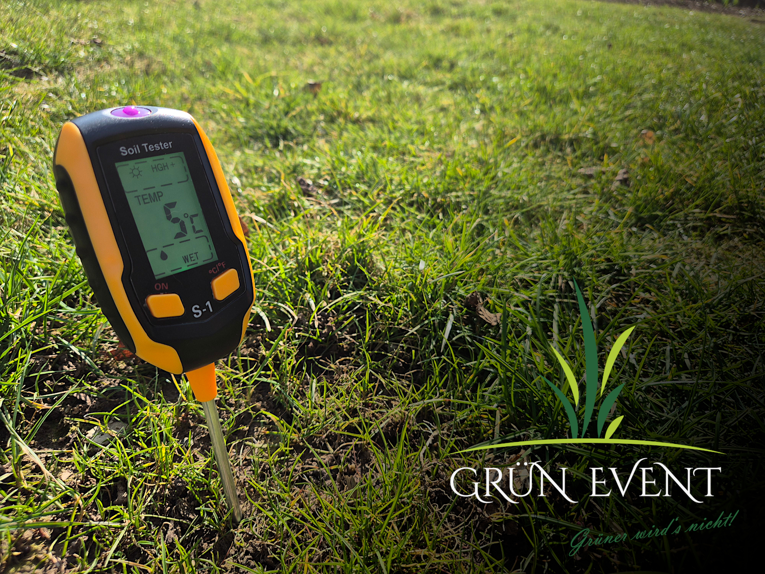 Mit unserem 4-in-1 Bodenmessgerät behalten Sie die Bodenqualität Ihres Rasens jederzeit im Blick. Das praktische Gerät misst Feuchtigkeit, Temperatur, pH-Wert und Licht – so wissen Sie genau, wann Ihr Rasen gegossen, gedüngt oder behandelt werden muss. Rasendüngungen können ab einer dauerhaften Bodentemperatur von 8 Grad durchgeführt werden, denn dann nimmt der Rasen die Nährstoffe gezielt auf. Das Messgerät unterstützt Sie bei der Rasenpflege.